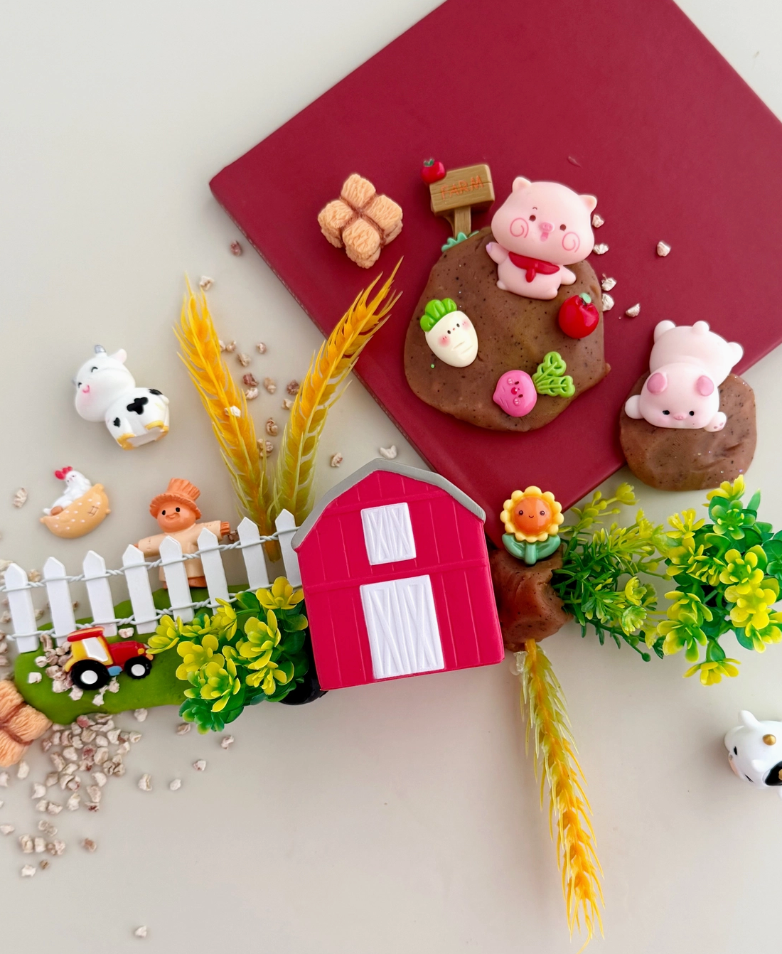 Includes: 8 oz Green (Apple) KidDough with Farm Themed Charms, Extra Large Barn, Farm Animal Friends, Scarecrow and Fence