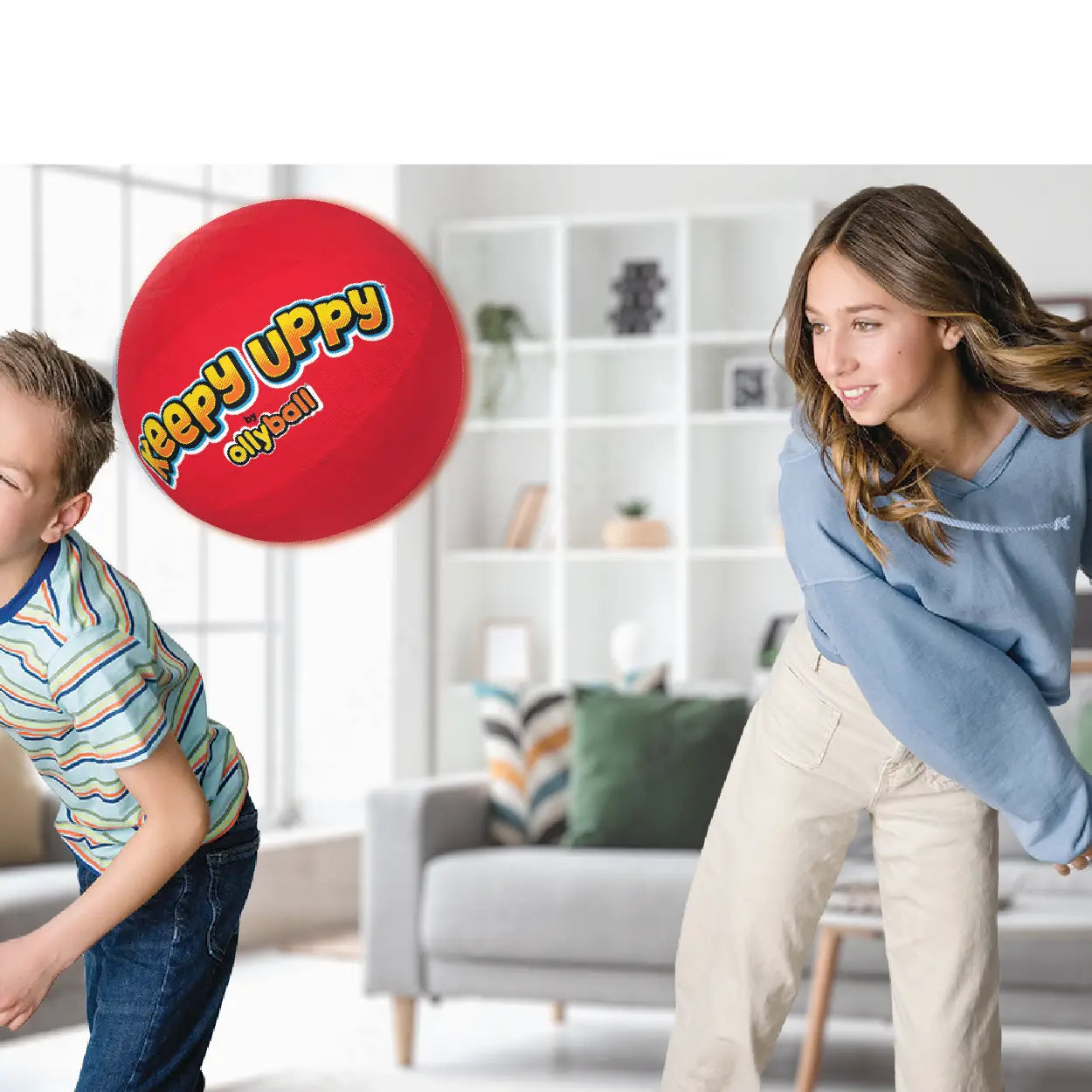 KEEPY UPPY® WINNER of the 2025 INFLUENCER CHOICE AWARD is the ultimate indoor play ball for kids and parents to safely play ball in the house. Hit it hard, kick it full-speed indoors without breaking windows or marking up your walls. The 12-inch re-inflatable ball, with Patented KrunchCOR™ construction, absorbs the impact from a full-speed hits and kicks. The outside cover is made in durable DuPont® olefin fibers. KEEPY UPPY™ is the ultimate indoor play ball! • Patented KrunchCOR® construction absorbs impact, will NOT BREAK WINDOWS! • Shell made from high-performance kite material • Easily inflate or deflate with the included straw. Ships deflated. • Great for rainy days, snowy days and parties