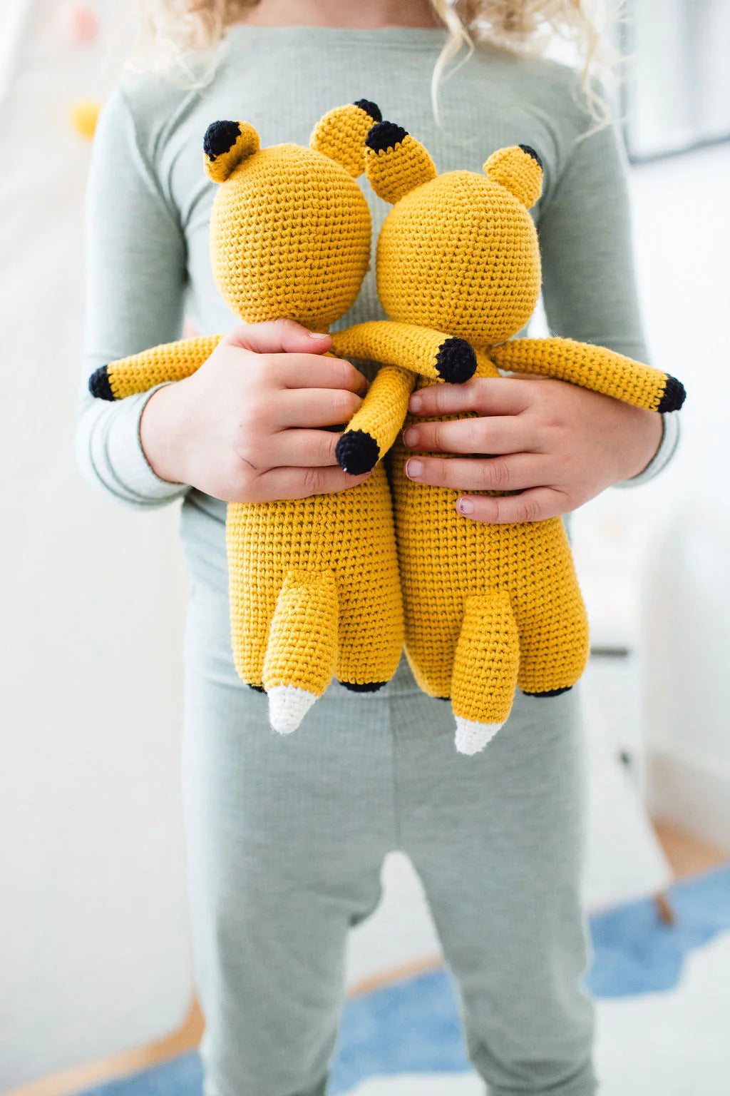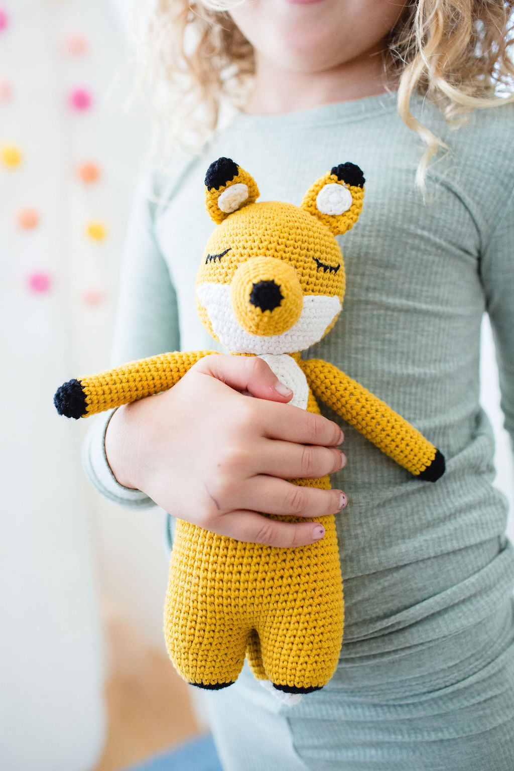 The Sleepover Friend is handmade with %100 cotton yarn and polyester cotton fill; measures 9 inches by 4 inches. Care instructions: requires nightly cuddles, machine wash on gentle and air dry. All friends are third party tested and have Children's Product Certificate (CPC) to ensure they are safe for newborns and children; imported, designed by Sleepover Friends.