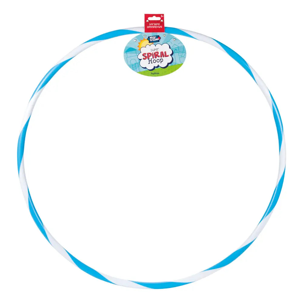 Sprial Hoops are filled with spinner beads and come in four assorted sizes: 24in, 27in and 30in. 3 yr plus. ach Super Spiral Hoop features a two-toned spiral design. Colors vary. Makes noise when played thanks to sound beads inside that create a musical sensation during movement. Not able to ship.