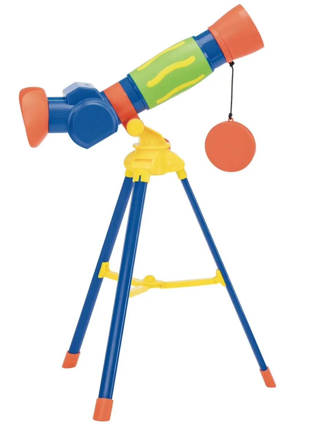 Discover amazing, up-close lunar exploration with GeoSafari Jr. My First Telescope! Little ones can explore the moon with this focus-free telescope, built specifically for little hands and growing minds. Perfect for STEM learning. The 9x magnification provides fantastic views of the moon, while keeping the field of vision wide, which is essential for young children's understanding of magnified views.