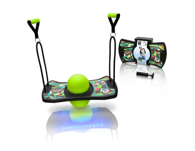 Bounce, jump, and spin with the Slackers Sky Board Underglow. Kids can take this outside to do tricks from easy to advanced with the board's heavy duty skateboard-like construction. Two trick grips make it easy to hold on and get started.