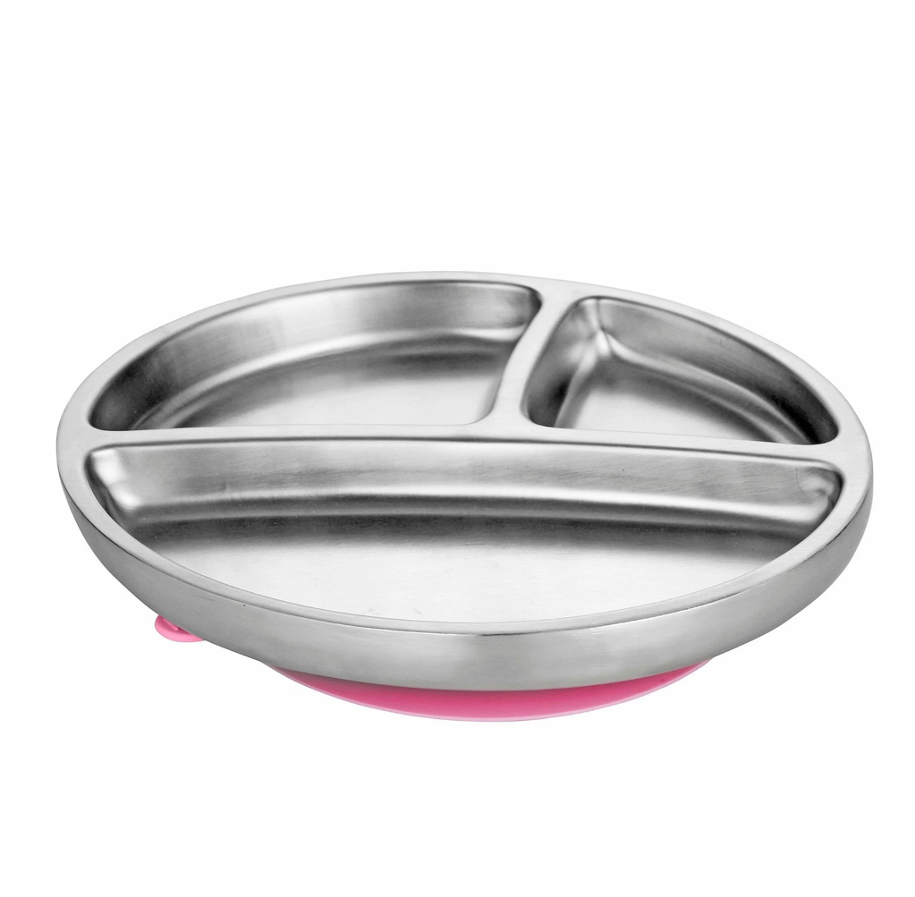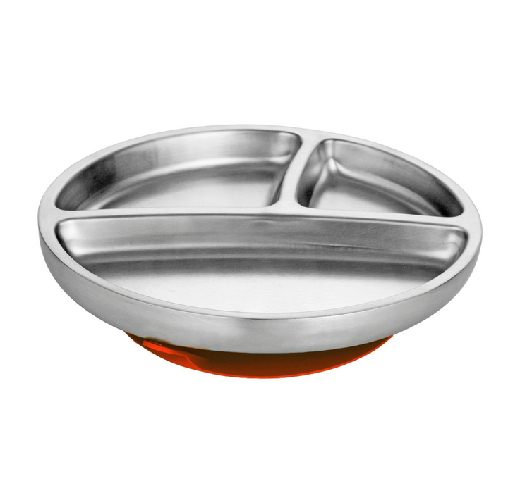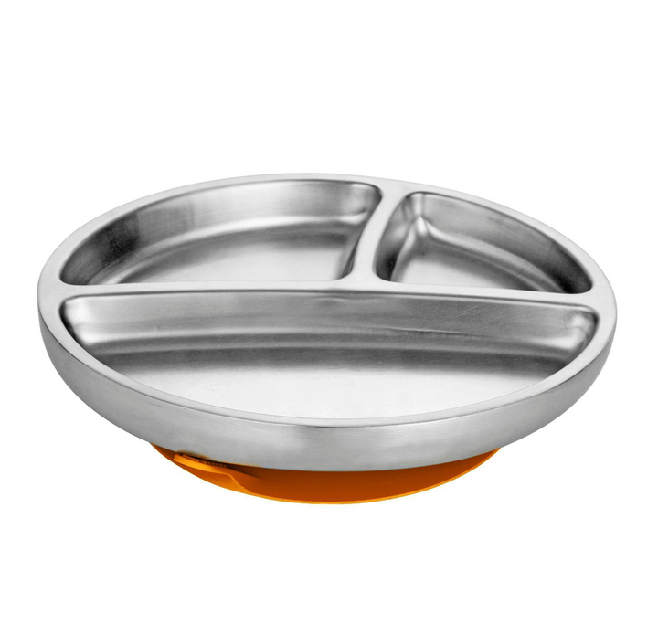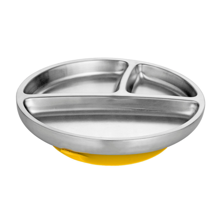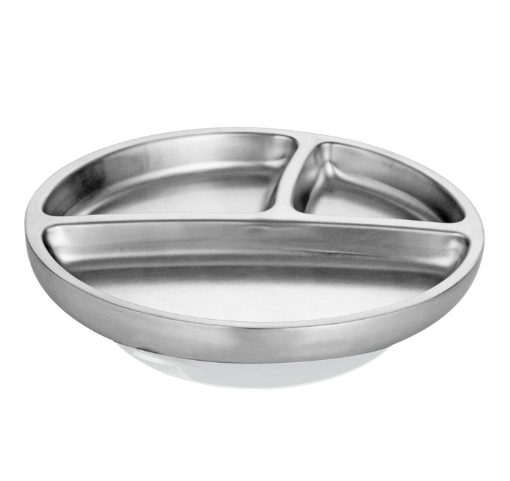 The Avanchy Stainless Steel Toddler Plate with removable silicone suction is a durable and practical solution to messy meals.